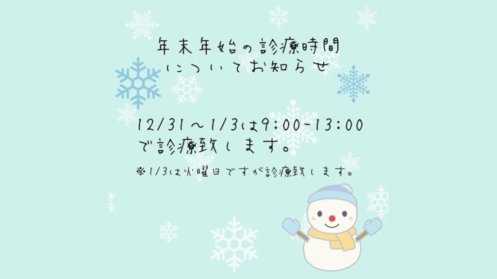 2022年 年末年始の診療時間についてのお知らせ