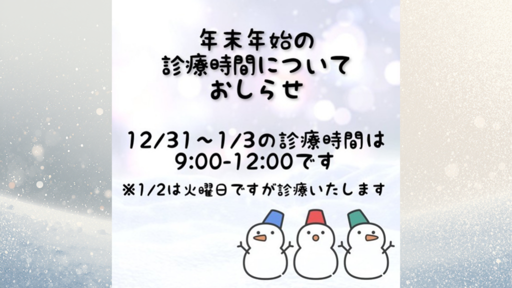 2023年度 年末年始の診療時間のお知らせ
