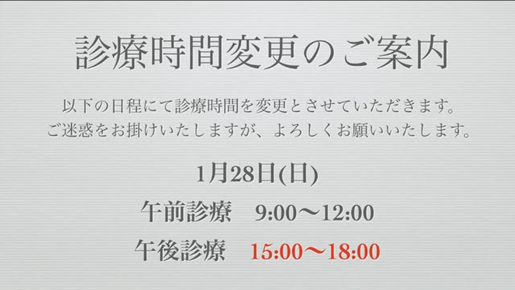 2024年1月28日(日)診療時間変更のご案内