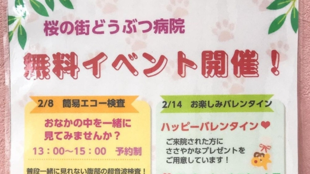 2月に無料イベント行います!!記載されているものはすべて無料です・:*+.\(( °ω° ))/.:+....バレンタインイベントに関しては予約はありませんので、散歩のついでに・体重測りに・おしゃべりしになどなどお気軽にご来院くださいね🙆♀️...スタッフ一同お待...